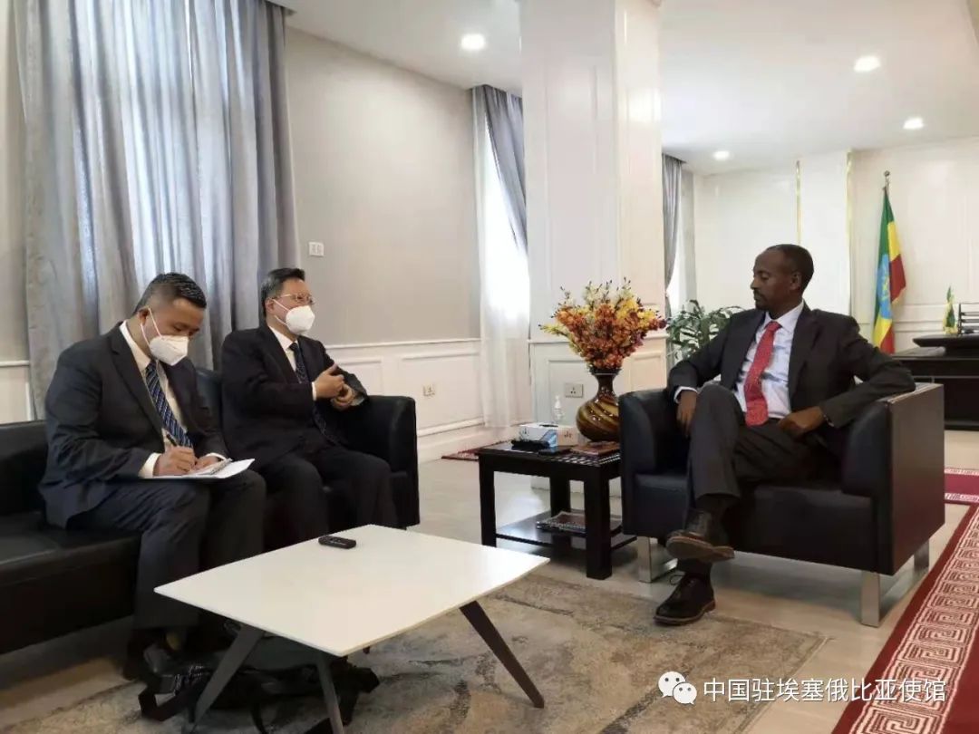 1月12日,驻埃塞俄比亚大使赵志远拜会埃塞贸易与工业部长穆拉库,就两国经贸合作交换看法。