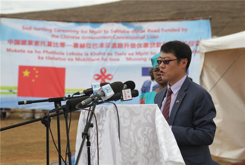 中国驻莱索托使馆临时代办宋常清发表致辞。郑彤彤 摄