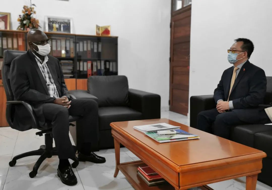 郭大使介绍了中国改革开放四十多年来的发展经验,表示近年来,中几比关系健康顺利发展,两国政治互信不断深化,各领域务实合作成果丰硕。中方高度重视并愿进一步加强同几比方在卫生、经贸、基础设施建设等各领域合作。愿同部长阁下一道,积极挖掘两国政府、企业开展多模式合作的潜力,更好造福两国人民。