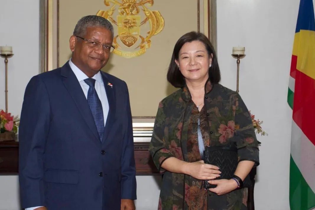 近日,塞舌尔新任总统瓦韦尔·拉姆卡拉旺集体会见并宴请驻塞使节,塞副总统阿菲夫、外长拉德贡德等陪同参加。驻塞舌尔大使郭玮应邀出席。